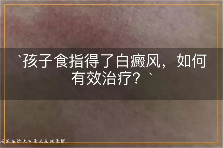哎,孩子手指上突然出现了白癜风,这可急坏了家长们。别担心,咱们来一起看看怎么治疗好。